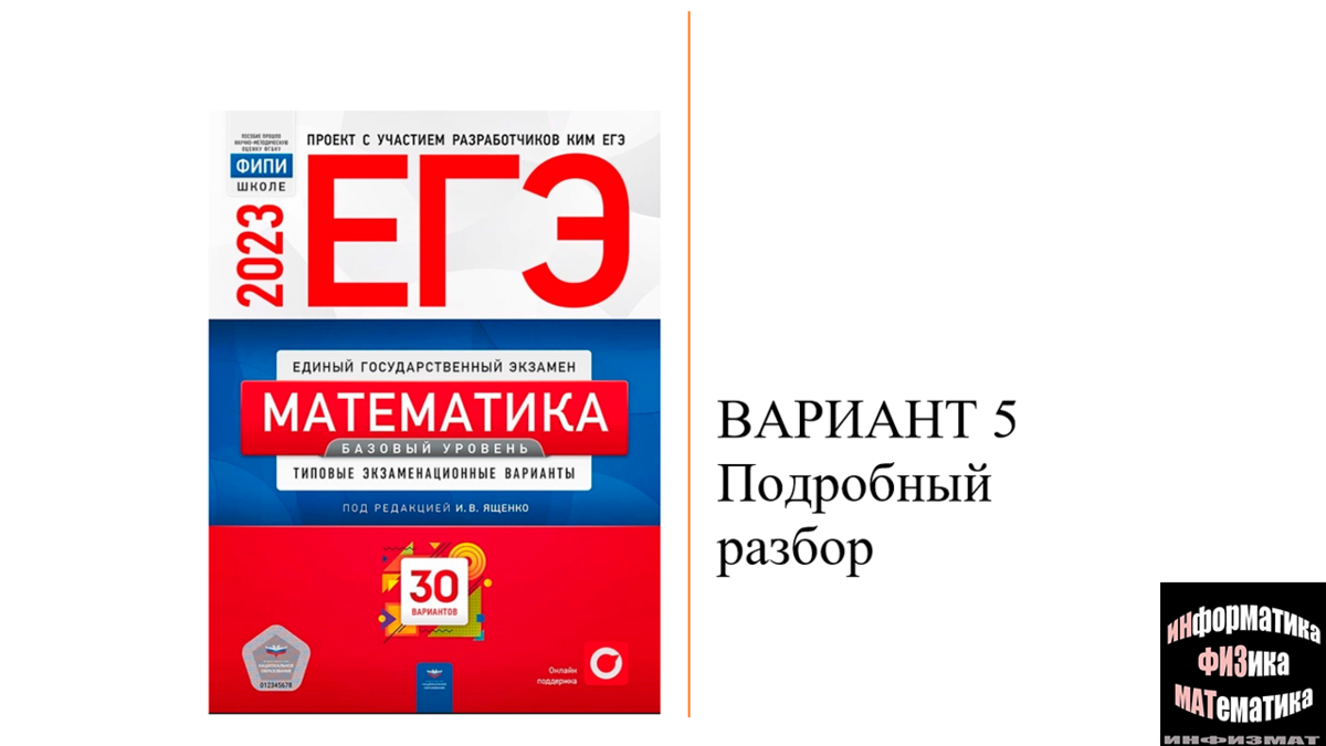 ЕГЭ математика базовый уровень 2023. Ященко. 30 вариантов. Вариант 5. Разбор.