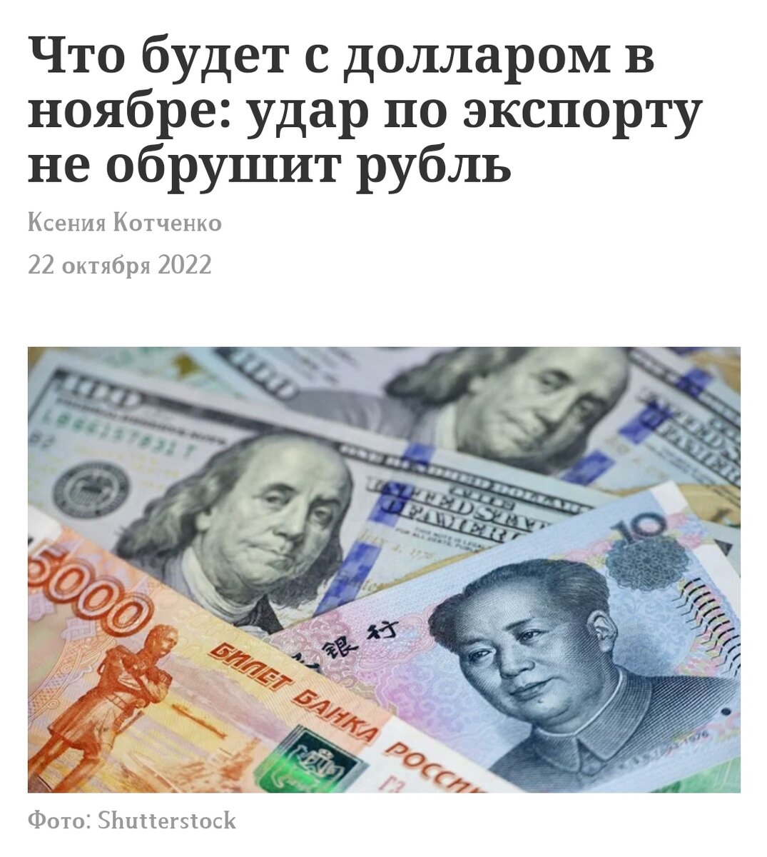 Рубль продолжает укрепляться с 12 октября, после временного резкого падения. В последний день торгов перед выходными российская валюта обновила 2х недельные вершины. Доллар достиг 60, а евро опустился чуть ниже 59 рублей. И даже негативный фон не сильно сказывается на рубле, благодаря всем введенным новым правилам и ограничениям. Та же нефть сохраняет низкий уровень цен. После продолжительного падения случаются лишь временные коррекции. Сейчас Brent торгуется на отметках в 90-95$. В первую очередь рубль получает сильную поддержку от приближающегося налогового периода. Основной день которого будет вторник 25 октября. Из-за чего экспортёры уже сейчас начинают активно продавать часть валютной выручки, которую они соизволили отправить на родину. Вследствие чего на рынке становится много не нужной валюты и курс рубля растёт. Пока курс рубля по тем или иным причинам остаётся крайне сильным, вы можете вкладывать деньги в доллар, евро, гонконгский доллар и другую сильную валюту. Пото