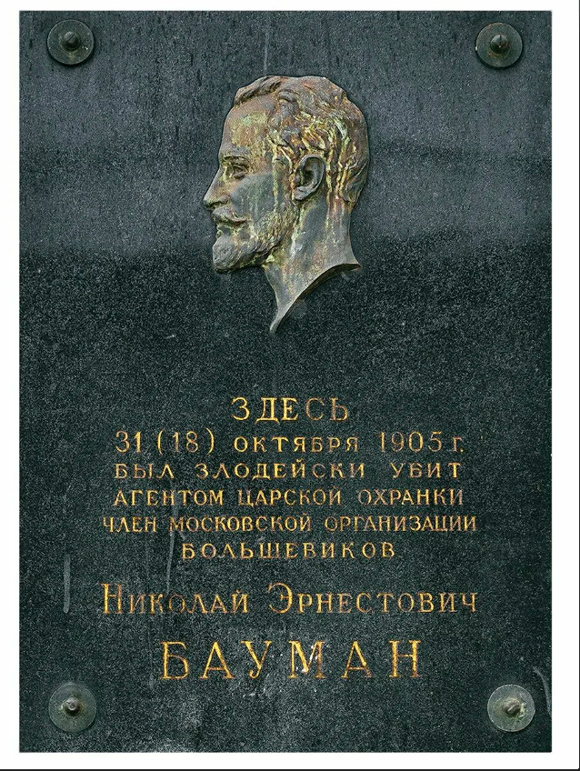 Улица названа в 1922 г. в память Н. Э. Баумана, пламенного революционера-большевика, убитого черносотенцем 18 октября 1905 г., когда Бауман с красным знаменем в руках ехал на извозчике во главе демонстрации освобождать политических заключенных из Таганской тюрьмы. На стене здания фабрики "Красная швея" помещена мемориальная доска. На черном полированном граните - бронзовый барельеф Баумана. Внизу высечены слова: "Здесь 31 октября 1905 года был злодейски убит агентом царской охранки член Московской организации большевиков Николай Эрнестович Бауман". До этого улица называлась Немецкой - по Немецкой слободе, находившейся здесь во времена Ивана Грозного, и Ново-Немецкой слободе, построенной в 1652 г. По настоянию русского духовенства царь Алексей Михайлович выселил сюда в 1652 г. всех "немцев", проживавших в Китай-городе. Белом и Земляном городах, то есть в современном Садовом кольце. Здесь жили иноземцы почти из всех государств Западной Европы: шведы, англичане, французы, датчане, голл