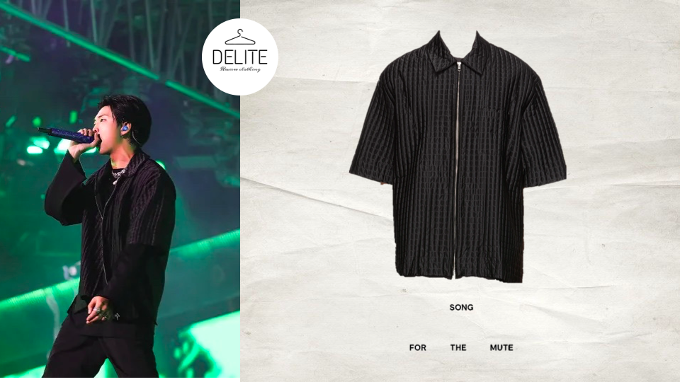 Совсем недавно, 15 октября, группа BTS выступила на концерте под названием "Yet To Come" в Пусане, Корея. Концерт был проведен с целью поддержки заявки Пусана на проведение у себя Всемирной Выставки "WORLD EXPO 2030 BUSAN" в 2030 году, крупнейшего международного мероприятия, официальными послами которого летом 2022 года были объявлены участники группы. Стоит отметить, что это первое совместное появление группы на сцене после объявления о перерыве групповой деятельности в июне этого года. Ну, и как всегда, любой концерт BTS не обходится без потрясающих образов, которые наш канал и хотел бы разобрать в данной публикации. Чтобы получше рассмотреть одежду участников, прикрепляем видео с выступлением, опубликованное на официальном YouTube-канале группы: Итак, начнем с Намджуна. На нём была чёрная рубашка с коротким рукавом от австралийского бренда SONG FOR THE MUTE. Стоимость такой рубашки составляет примерно 42,5 тыс. рублей. От того же бренда была и чёрная куртка Тэхёна с жаккардовым у