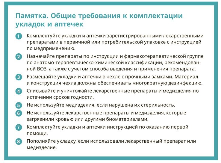 Требования к комплектации укладок и аптечек