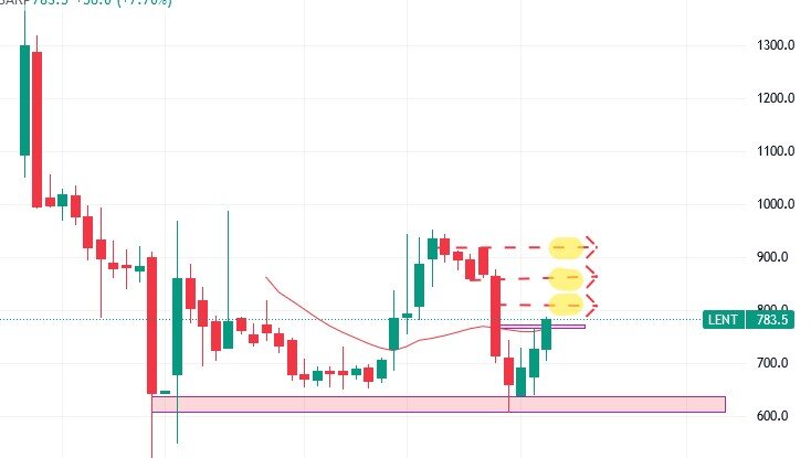 #LENT Лента опубликует операционные результаты за III квартал 2022 г. Основные результаты 1 квартала 2022 года ✔️Продажи выросли на 23,4% год к году до 132,4 млрд руб. ✔️Розничные продажи достигли 130,5 млрд руб., увеличившись на 23,3% год к году. ✔️Сопоставимые продажи выросли на 7,8%, в то время как средний чек LFL увеличился на 9,4%. ✔️Онлайн-продажи выросли на 184,2% год к году до 10,8 млрд руб. ✔️Компания открыла 44 магазина малых форматов на валовой основе. 👉 Больше в телеграм канале Итоги работы за III квартал 2021 г. Согласно данным отчётности, розничная выручка компании увеличилась на 13,5% — до 116,1 млрд руб., а чистая прибыль по МСФО подскочила на 91,4%, или в 1,9 раза — до 4,18 млрд руб. Кроме того, на 4,7% — до 336,33 млрд руб. — выросла выручка ритейлера. В среднесрочной перспективе при благоприятных условиях, возврат к цене 900 рублей за акцию. Спекулятивно, отчет уже в цене, возможно поход 800-810. На Недельном графике (1Н) видно что 3 недели под