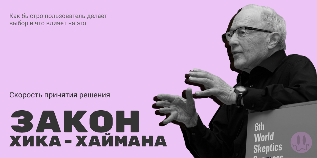Понимание психологии пользователя всегда будет стоять на первом месте в дизайне, от этого зависит дальнейший успех продукта. К счастью, большинство особенностей психологии в дизане уже нашли своих создателей и имеют названия. Сегодня говорим про закон Хика-Хаймана. Закон Хика или закон Хика-Хаймана описывает время, необходимое пользователю для принятия решения в результате возможного выбора. В 1952 году британский психолог Уильям Хик и американский профессор психологии Рэй Хайман провели интересный эксперимент. Для этого к 10 лампочкам были подведены кнопки. Испытуемому необходимо было нажимать кнопки в соответствие с загарающимися лампочками (кнопки расположены прями под пальцами, чтобы не учитывать время перемещения до нужной). На графике показана зависимость времени от количества объектов. Отсюда следует, что время принятия решения увеличивается с возростанием количества вариантов. Практическое использование В дизайне интерфейсов: выпадающее меню, форма регистрации, контактная фор