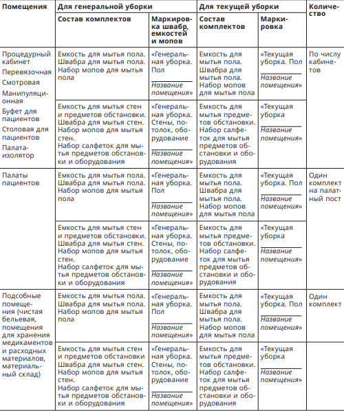 Пример комплектов уборочного инвентаря для стационарных отделений