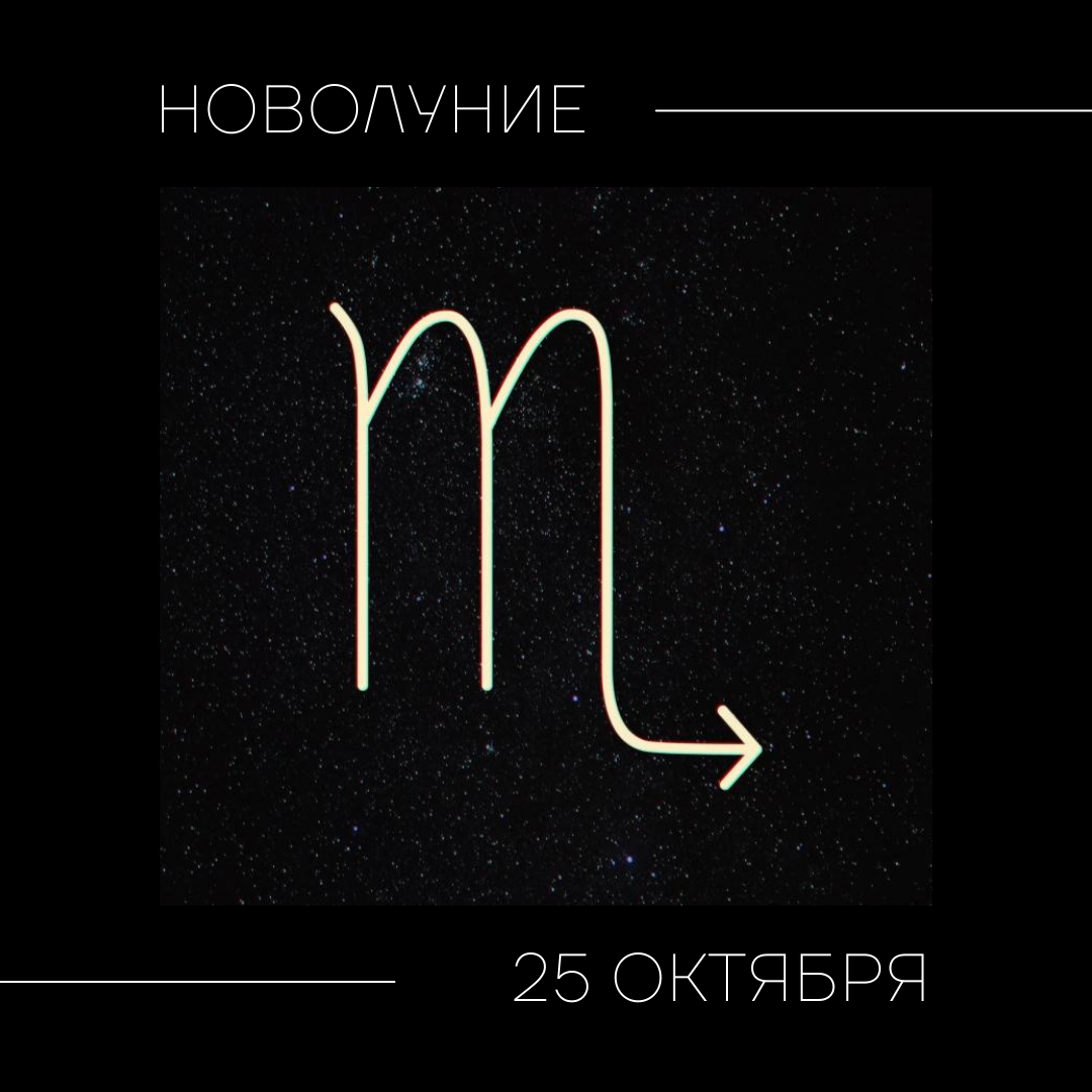 Новолуние в Скорпионе и Солнечное затмение во вторник, 25 октября в 13:48 (по Москве). Стихия: Вода Черты знака: Таинственность, глубина, преданность Основные темы: Кризис, смерть и перерождение. Энергия теневой стороны человека. Пройти огонь и воду Полнолуние Овна в начале октября вскрыло внутренние конфликты через огненные эмоции. За прошедшие две недели было предостаточно времени, чтобы разобраться с этим. Поддержать рыдающего ребёнка в себе и додать всё необходимое. А сейчас предстоит ещё одна крутая горка - Новолуние в Скорпионе. От раскалённого эмоциями солнца мы скрываемся в тени, чтобы встретиться со своей Истиной. В безлунности, темноте и пустоте. Наступает время пересмотра, которым не стоит пренебрегать. Весь мир перестраивается. И важную роль сейчас играет твой личный настрой, готовность идти вперёд. Сбросить омертвевшую чешую. Обрести свою силу и опору, даже если страшно. Будущее туманно, но всё же оно есть. Утром перед Новолунием посмотри внутрь. Замечай любые тяжелые