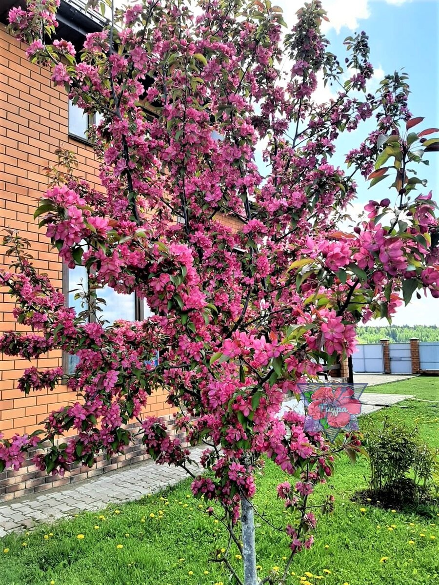 Всем привет👋 Да, наверно не самый подходящий период я выбрала для рассказа о нашей яблоньке, так как уже конец октября, но уж очень хочется показать какой у нас "урожай" яблочек на ней в этом году. Хоть и его нельзя скушать. Яблоня Роялти - одно из самых любимых маминых деревьев, растущих на нашем участке. Вообще впервые мы такую яблоню увидели на одной улице в городе. Там такие деревья прям аллеей посажены и весной там просто красотища. Все деревья усыпаны розово-сиреневыми цветами. Мама сразу сказала, что такое дерево обязательно найдет. И нашла. Родители посадили эту декоративную яблоню сразу после постройки дома. Хоть и прошло уже где-то 6 лет, но растет она довольно медленно и большим деревом ее еще назвать сложно. Сейчас яблонька примерно 2,5 м в высоту, но это не сам ствол такой высокий. Есть часть веток, которые тянутся вверх. Поэтому такая высота в общей сумме. Хоть яблонька и не очень большая, но это просто волшебной красоты дерево. Обычно с конца весны (все зависит от по