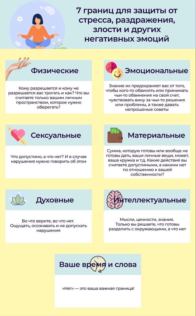 📌 Инфографика: 7 границ для защиты от стресса, раздражения, злости и других негативных эмоций