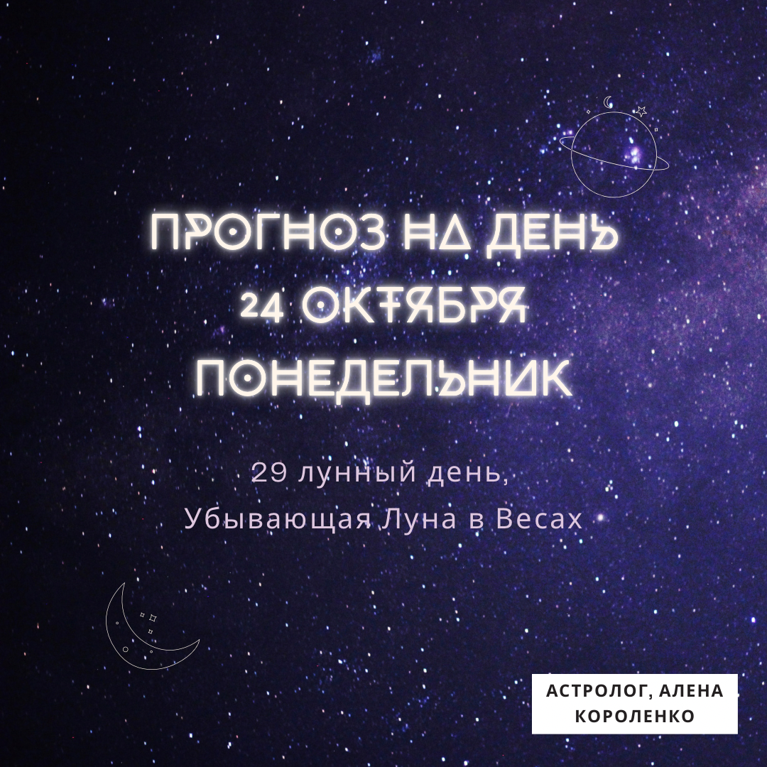 Понедельник начинается с относительно благоприятной атмосферы. Луна в знаке Весы и настраивает на дипломатию и общение. Самое время искать компромисс, уравновешивать ситуацию, мирить и мириться, заниматься стилем и дизайном.
