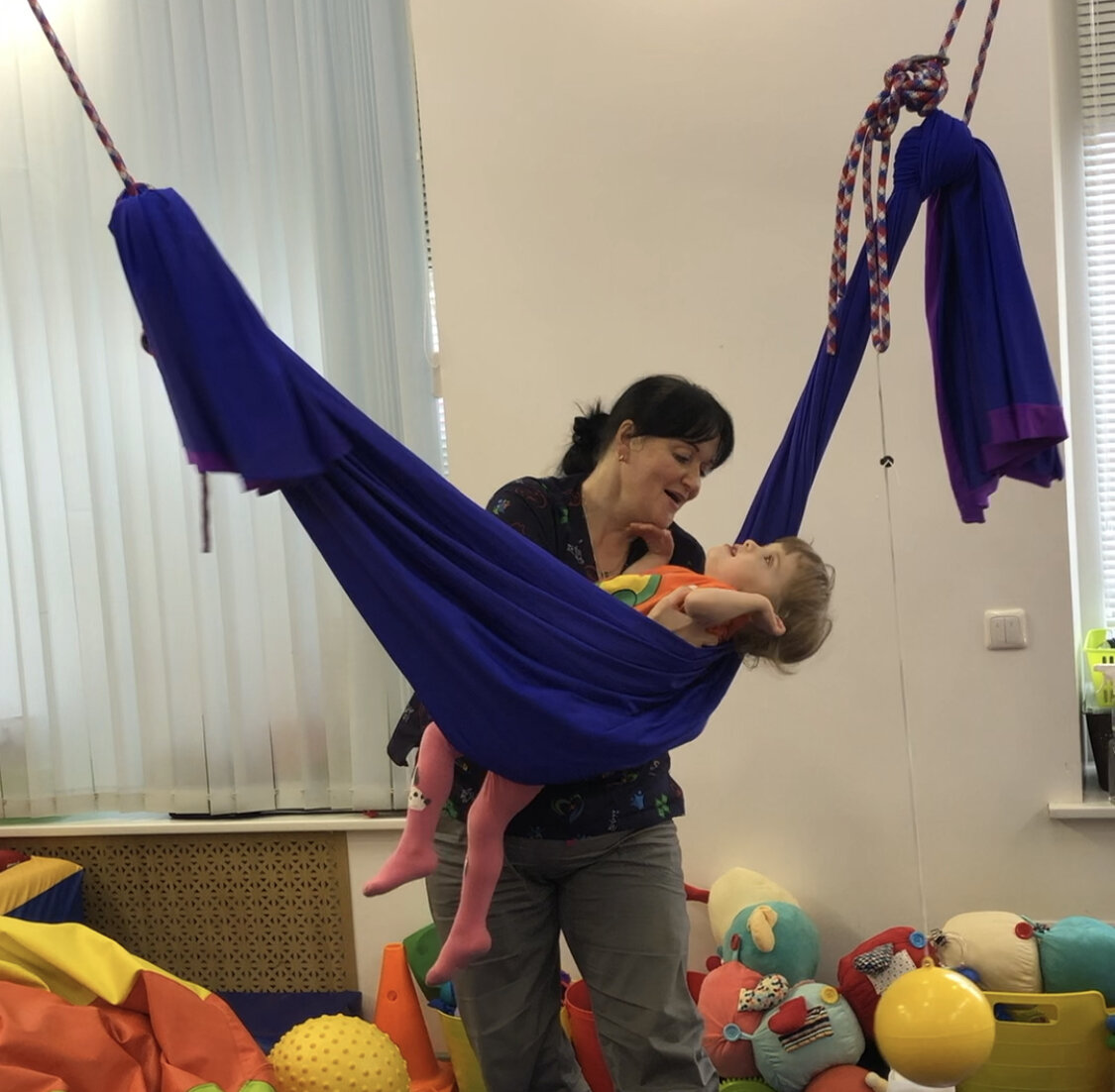 На занятиях по сенсорной интеграции часть времени уделяется именно восстановлению и укреплению вестибулярного аппарата, ведь поражение центральной нервной системы напрямую ведёт к нарушению в работе этого органа, который располагается в центральной части костного лабиринта во внутреннем ухе.