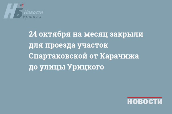 24 октября на месяц закрыли для проезда участок Спартаковской от Карачижа до улицы Урицкого