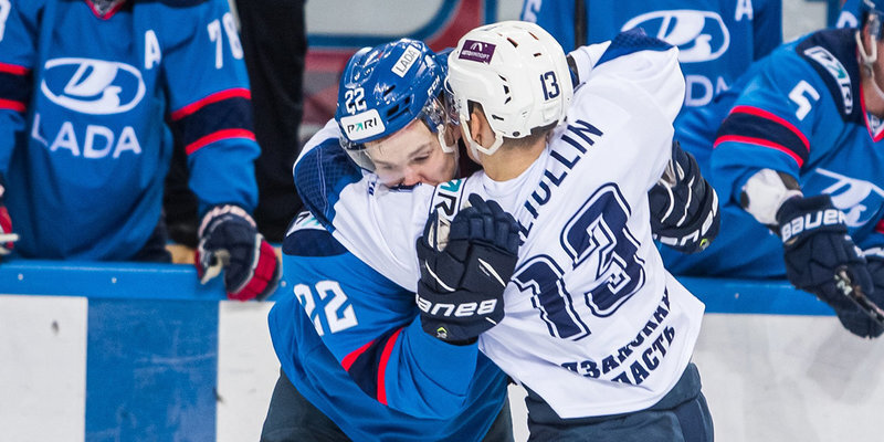 Драки на льду — одна из главных особенностей хоккея. Хотя ледовые побоища запрещены правилами игры, хорошие матчи редко обходятся без брутальных потасовок — таковы хоккейные традиции. Однако свои законы есть и у этих боëв — за некоторые приëмы судьи наказывают игроков особенно жëстко. Форвард «Рязань-ВДВ» во время драки перешëл границу и… укусил своего оппонента! Теперь нападающему грозят большие проблемы. Судья не оценил Во время матча «Лады» с «Рязань-ВДВ» настоящее шоу началось только во втором периоде. После жесткого силового приема игрока тольяттинской команды Павла Медведева на Романе Кривошееве возле скамейки «Рязани» игроки решили отомстить за товарища, организовав массовую потасовку. Главными представителями своих команд в ледовой битве стали Никита Аноховский и Ростислав Халиуллин. После того, как судьям удалось разнять хоккейных бойцов, нападающий «Лады» начал активно показывать рефери на свою левую руку. Почему Аноховский делал это, стало понятно, когда диктор объявил выпис