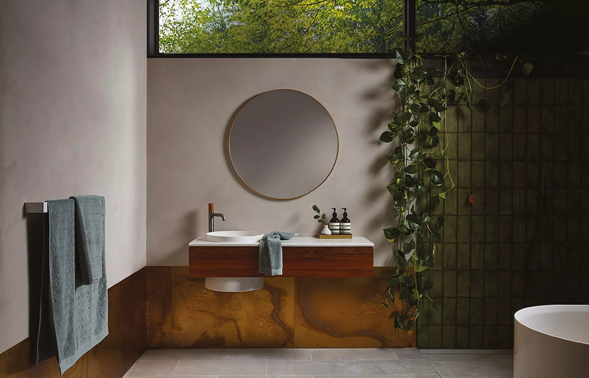Ванные комнаты существенно изменились: свежие тенденции в их оформлении направлены на создание атмосферы безмятежности и счастья. Здесь проводят время как в домашнем спа-салоне и продолжают заботиться о главном — собственном теле и личном здоровье. Домашний салон красоты Виртуальные встречи, которые все привыкли проводить на дому, превратили раковины и туалетные столики в стойки для макияжа и место для парикмахерских укладок. Этот спрос на повышенную функциональность в области косметического ухода на дому вряд ли исчезнет в ближайшее время. Зеленый и терракота Этот тренд обусловлен сразу двумя факторами: возвращением в моду обоев с новыми интересными узорами в качестве отделки ванных комнат и тоской по путешествиям. В этому году ожидают интерьеры, украшенные обоями или занавесками для душа с изображением огромных экзотических листьев в сочетании с теплыми землистыми полотенцами для рук и ярко-красными акцентами столешницы. Эта цветовая комбинация повторяется во множестве разновидност