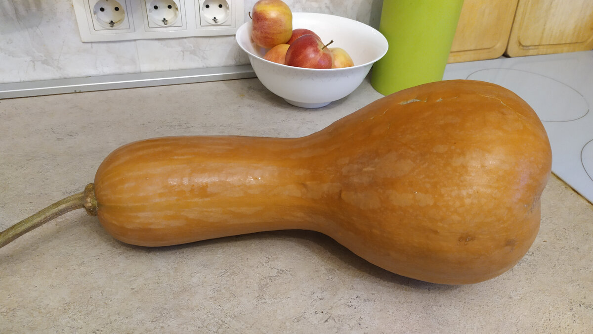 Сегодня с утра - торжественное событие. Я режу мускатную тыкву! В чем торжество? Просто она у меня выросла и дозрела в первый раз. Вот так уж получилось. То не всходила, то не вызревала. А нынче целых три выросли. Но, как показало вскрытие первой, самой спелой, семечки все пустотелые. Своих семян не будет. Значит, все же, не совсем вызрела? Ну это уже неважно. Куплю семена в магазине. Первым делом я попробовала её на вкус. Нет противного тыквенного привкуса. Мягкая, достаточно сочная, сладкая. Можно без всякой натяжки есть сырой и получать удовольствие. Не хуже чем морковка. Я раскромсала красавицу, очистила от корки и поделила на три неравные части. Немного засушу тонкими ломтиками, немного оставлю похрумкать в свежем виде, а ещё сварю, чтобы сделать пюре. Насчет пюре. Употребить я его хочу на тыквенные кексы, а оставшееся заморозить. Чтобы зимой использовать в кашах или выпечке. Кексы решила сделать вот по этому рецепту: Продукты (на 12 порций)