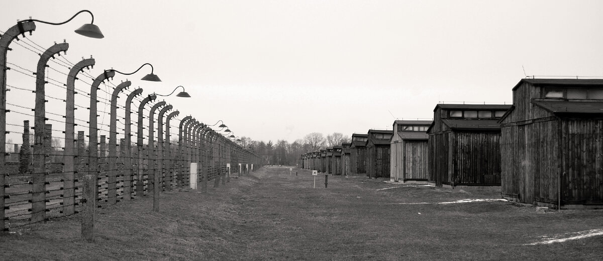 Он стоит, пристально глядя через щели в стенке вагона, через немилосердно падающий снег на удаляющийся Биркенау.