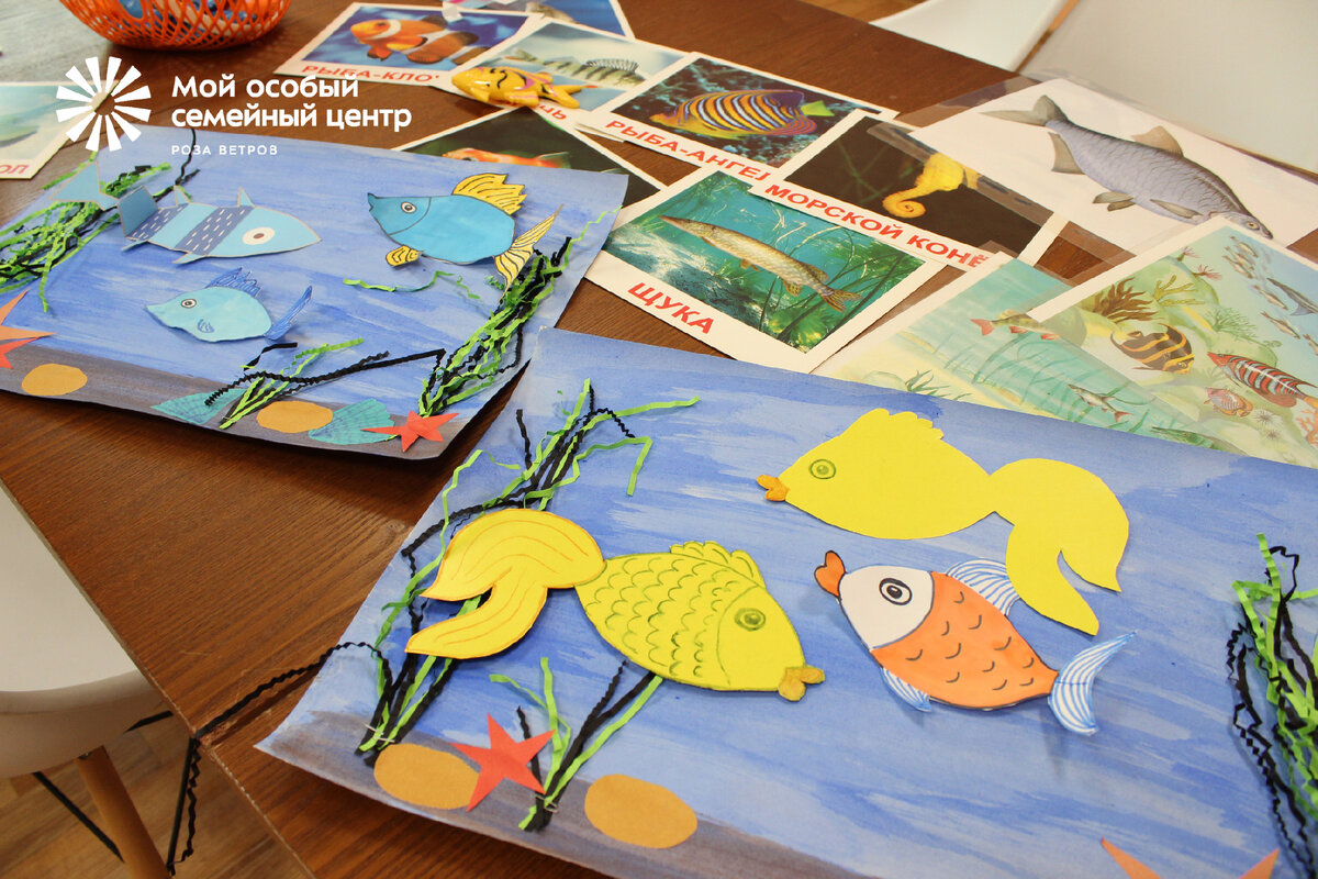 Водные обитатели вдохновили ребят из особого семейного центра «Роза ветров» на аппликацию и рисование