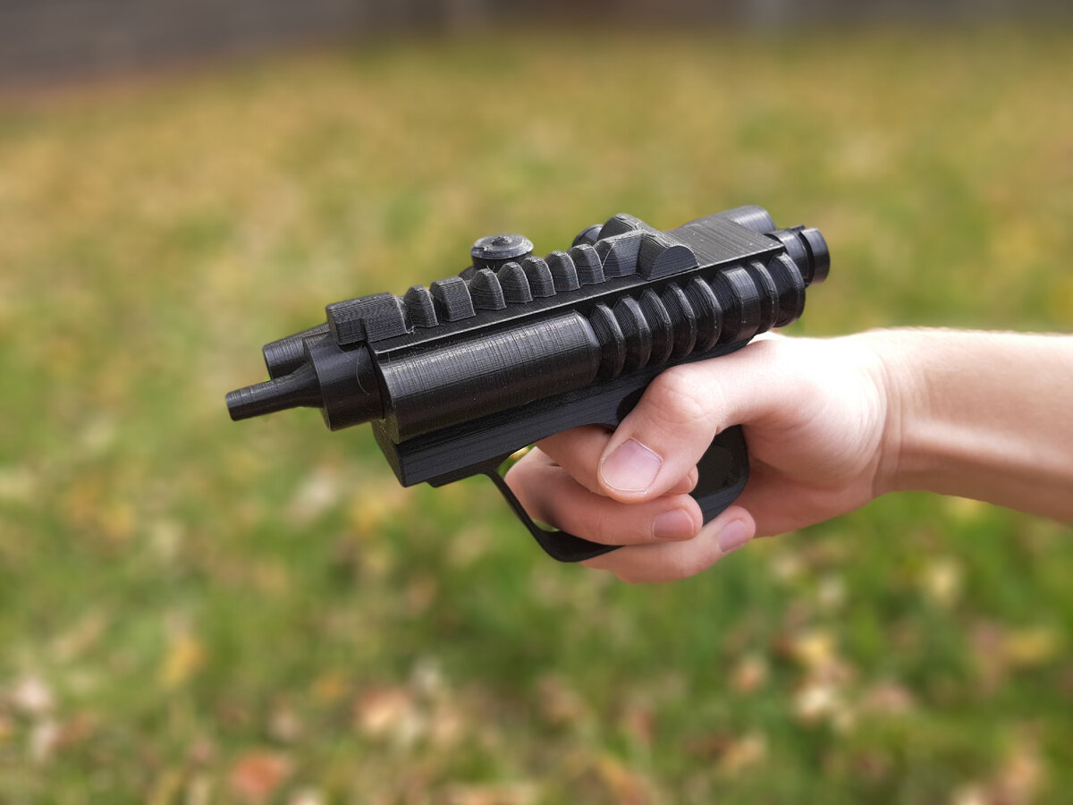 Печаталось всё из PLA пластика (надеюсь не пожалею о выборе, все мы знаем, как он хорошо шлифуется...), состоит из 18 отдельных деталей, комфортно печатается в 3 захода на одном принтере (Flying Bear Ghost 4s), весит мало, прикольная пукалка в общем.