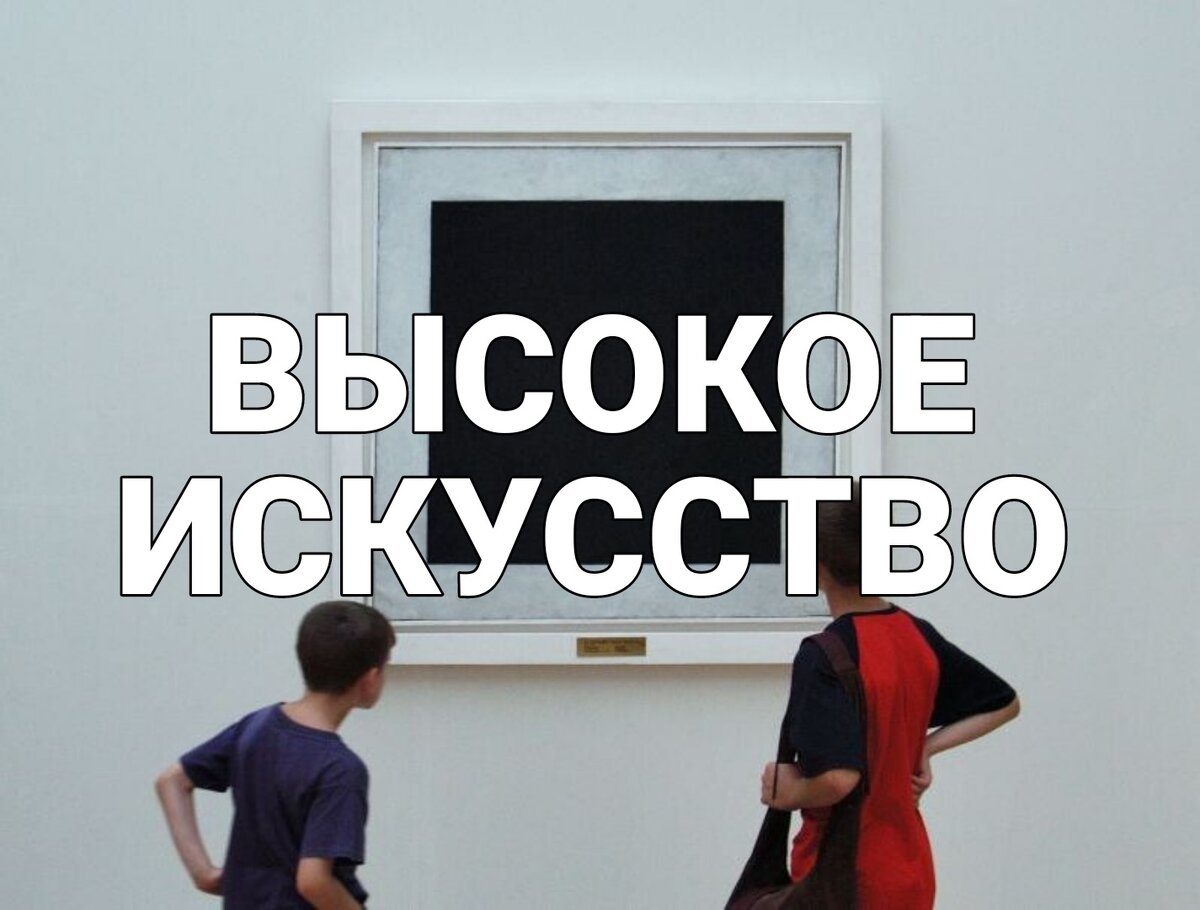 Высокое искусство- это ширма за которой прикрывается вся интелегенция, которая хочет оградить себя от обычных плебеев. Все собрания ценителей высокого искусства выглядит так: стоит толпа людей одетые в деловые костюмы, они с умным видом разглядывают красные пятна на белом холсте и говорят о глубоком смысле этого шедевра. Если внедрить в их компанию хоть чуть-чуть честного человека, который скажет им что они занимаются полной хуйней, то весь их мир рухнет. На самом же деле ни один человек не выкупает прикола "Черного квадрата" Малевича и прочей чепухи высокого искусства.
