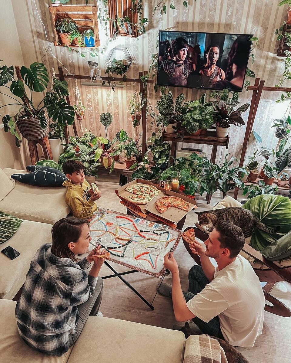 С приходом осени как-то меньше стал уделять внимания растениям и больше себе. Нет пока привычных позывов постоянно что-то пересаживать, обрабатывать, наводить блеск и рассматривать. Свет обеспечил на зиму и ладно 💁🏻♂️. Думаю, что это временно, если организм так просит, отпустить пока уход и возню с цветами и посвящать больше времени себе, то так и надо сделать. ⠀ Набрал книг для чтения, хожу по разным процедурам (типа массажа, педикюра и чистки лица), завариваю чаек, смотрю сериалы. А сейчас особенно уютно стало, приехала подруга друга 😂 в гости из Владивостока, привезла какую-то лютую настолку про поезда. Второй вечер уже заказываем пиццу «Додо» и дружно все валяемся и строим маршруты из поездов ☺️🚂🍕. ⠀ Надо сказать, что это вообще сейчас моя зона комфорта - моя спальня с тв, пиццей, играми, свечами. Мне спокойно и хорошо здесь. И это не плохо, я не виню себя за такие маршруты и такие осенние будни. Повторюсь, организм просит сейчас комфорта, уюта и каких-то банальных радостей в