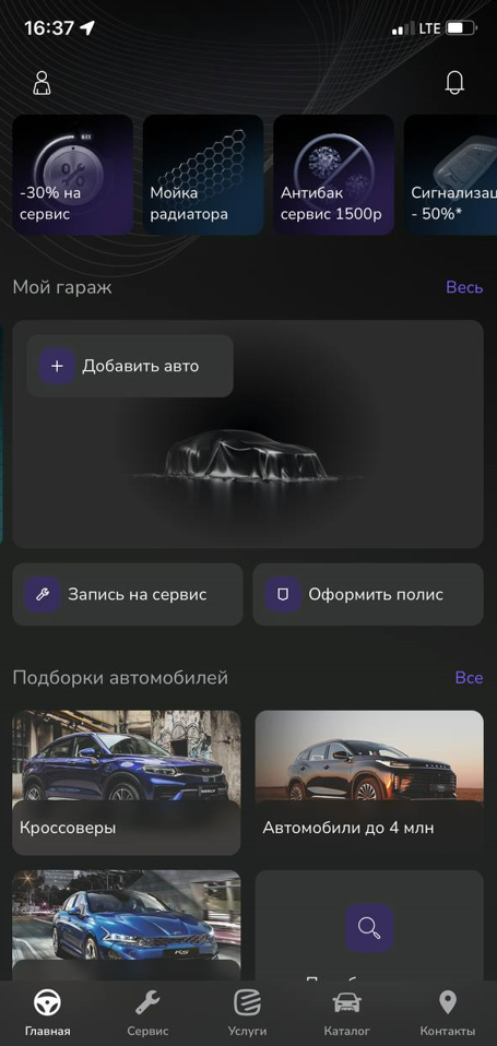 - Создавать заявку на сервис или оформить полис теперь можно с главного экрана