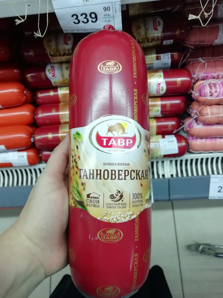 Колбаса Ганноверская, это как сосиски, только сделаны колбасой. Я, кстати, давно перестала их брать, они испортились и стали невкусными.