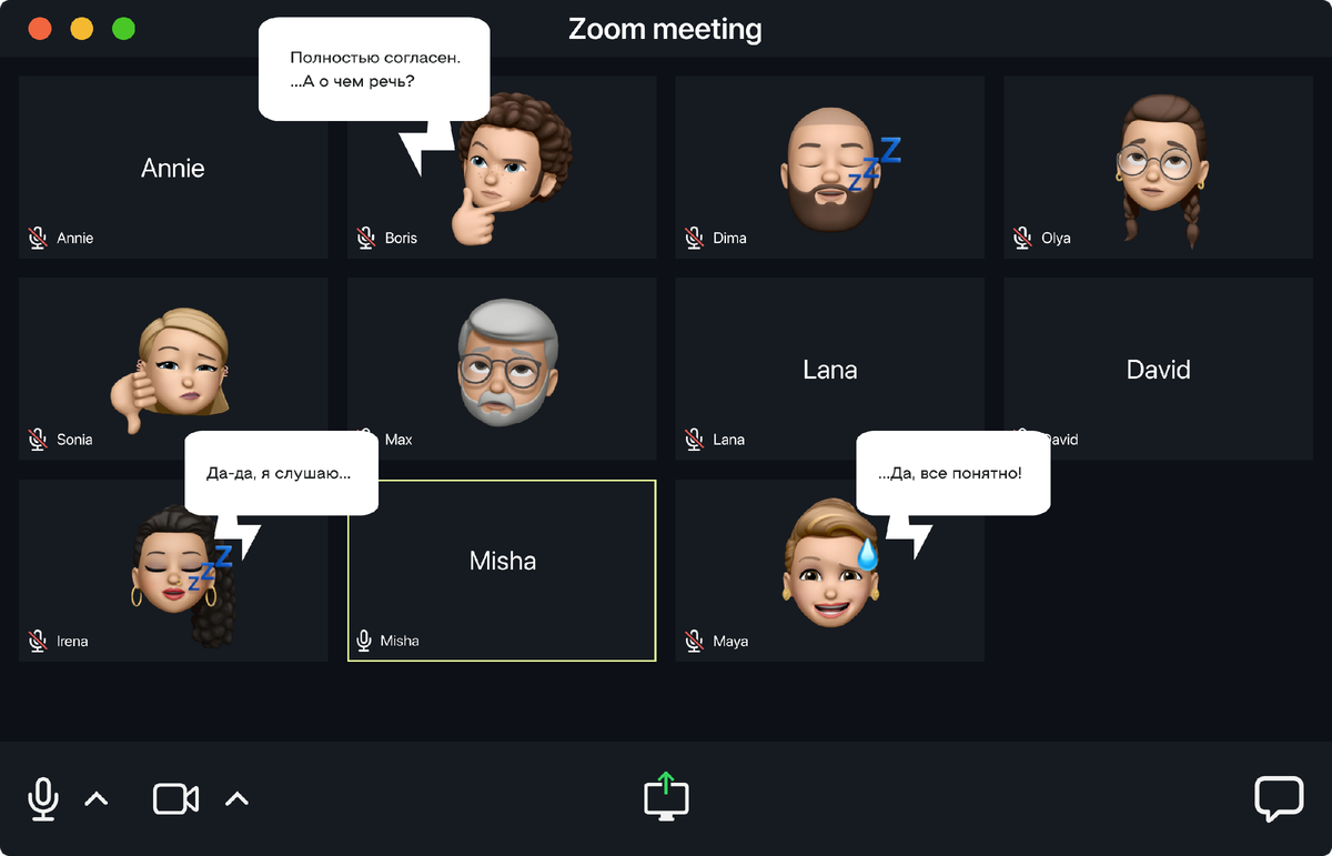 Каждый из нас хоть раз бывал на неловком zoom-созвоне, где ребята сидят с выключенным звуком, смотрят сквозь экран и периодически натянуто улыбаются. Мысли у всех примерно об одном: «А ведь я сейчас мог заниматься чем-то полезным, но вместо этого сижу здесь очередной рабочий час и снова закончу позже».