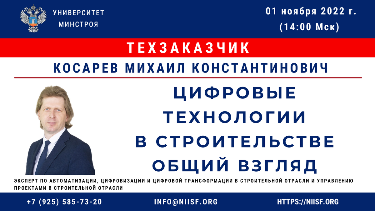 🎓Спикер: Косарев Михаил Константинович - Эксперт по автоматизации, цифровизации, цифровой трансформации и управлению проектами в строительной отрасли.