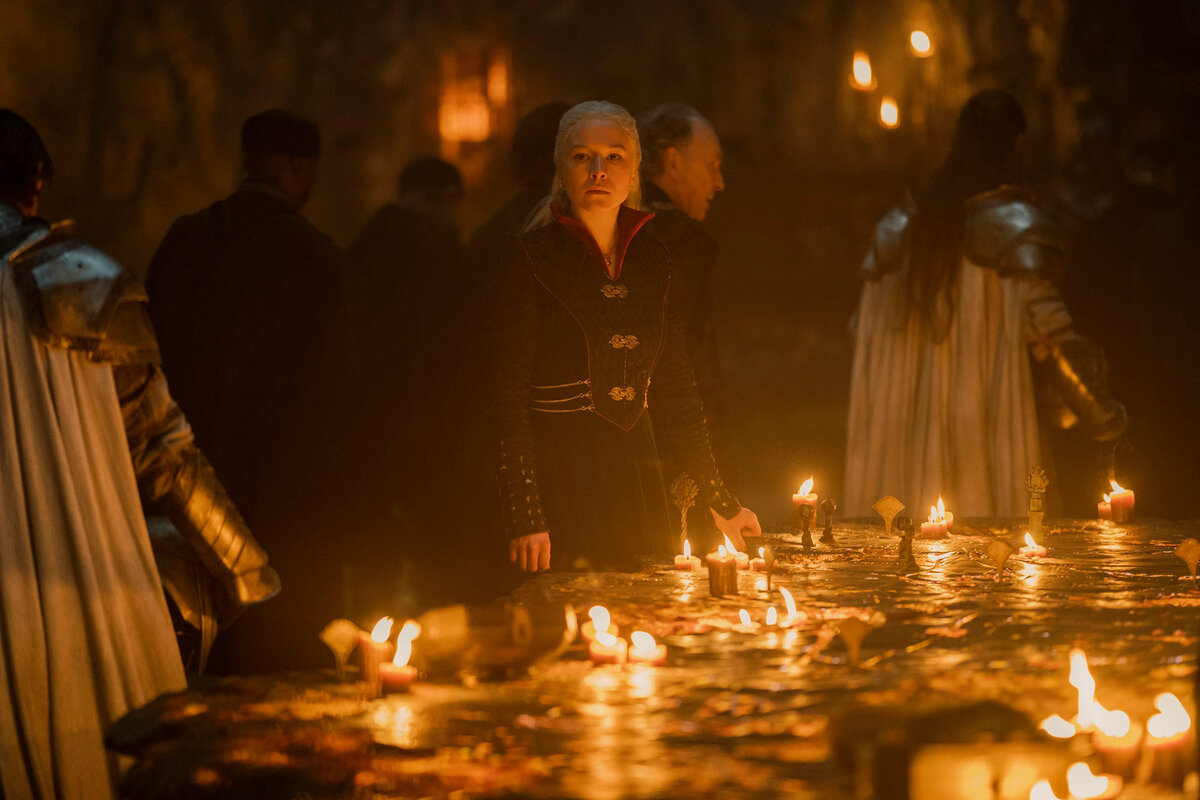 Дейемон. Наш безумно харизматичный Порочный Принц недоволен решениями своей племянницы-жены, так как ему уже не терпится снести голову Алисенты и её папаши. Дейемон сразу же начал собирать союзников и самолично короновал Рейениру. Более того, он твёрдо уверен в том, что это Алисента убила его брата, что если честно даже немного глупо. Визерис уже был ходячим мертвецом, когда братья в последний раз виделись и обвинение Дейемона звучало немного нелогично. Хотя, в книгах, бытовало мнение, будто бы Король умер не своей смертью и его травили многие годы, а Алисента, чтобы побыстрее короновать своего сына, будто завершила начатое. Сериал развеял эту теорию решив не демонизировать "зелёных" еще больше.