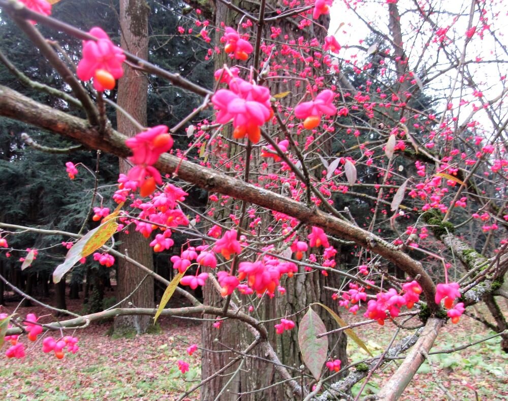 Выставка железнодорожных моделей к 185летию железных дорог России проходит на ВДНХ в 53 павильоне (это около павильона "Космос"). Чтобы совместить приятное с полезным, мы начали нашу прогулку от метро "Владыкино" и пошли на ВДНХ через Ботанический сад. Тем более там есть чего посмотреть, несмотря на позднюю осень. Толпа любителей йоги искала нирвану на газоне, прямо у таблички "ходить по газонам запрещено". Наверное, эта толпа была видна только нам, потому что охранник степенно ходил вокруг пруда и не обращал внимания на протянувших к небу руки людей. "А теперь давайте обнимемся, чтобы почувствовать локоть соседа!" - командовала руководитель.... А ну их... в карму. На центральной аллее практически не было ни людей ни велосипедистов, поэтому можно было идти и разглядывать стоящие рядом с аллеей деревья. Дубы уже сбросили листья, лишь березы упорно не поддавались ветрам и почти все стояли в листве. Пряди желтых листьев проглядывали через зеленые, совсем как у людей. А вот что это такое