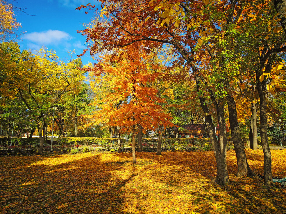 Продолжаю виртуальную прогулку по осеннему Загородному парку в Самаре. Эти фотографии сделал год назад, тогда октябрь был гораздо лучше. Предыдущие части можно посмотреть по ссылкам ниже. Как и в любом парке, в советское время в Загородном установили различные аттракционы. И именно здесь они сохранились до сих пор. По-моему, у нас в городе старые аттракционы нигде больше не найти. Конечно, они уже не работают. Вероятно, их тоже скоро демонтируют. Уже несколько лет СМИ периодически рассказывают о планах капитальной реконструкции парка. В очередной подборке предлагаю посмотреть на некоторые из них в осеннем обрамлении. Две карусели для совсем маленьких. «Юнга» и что-то вроде «Ромашки» или «Орбиты». Качели «Лодочки». Какой-то поздней модификации. В моём детстве они были значительно проще. Чуть дальше стоят и развлечения для более взрослых. «Сюрприз» и колесо обозрения. Первое совсем уже развалина. В этот раз его не стал снимать. Но где-то в архиве есть и такая фотосессия. А колесо поснима