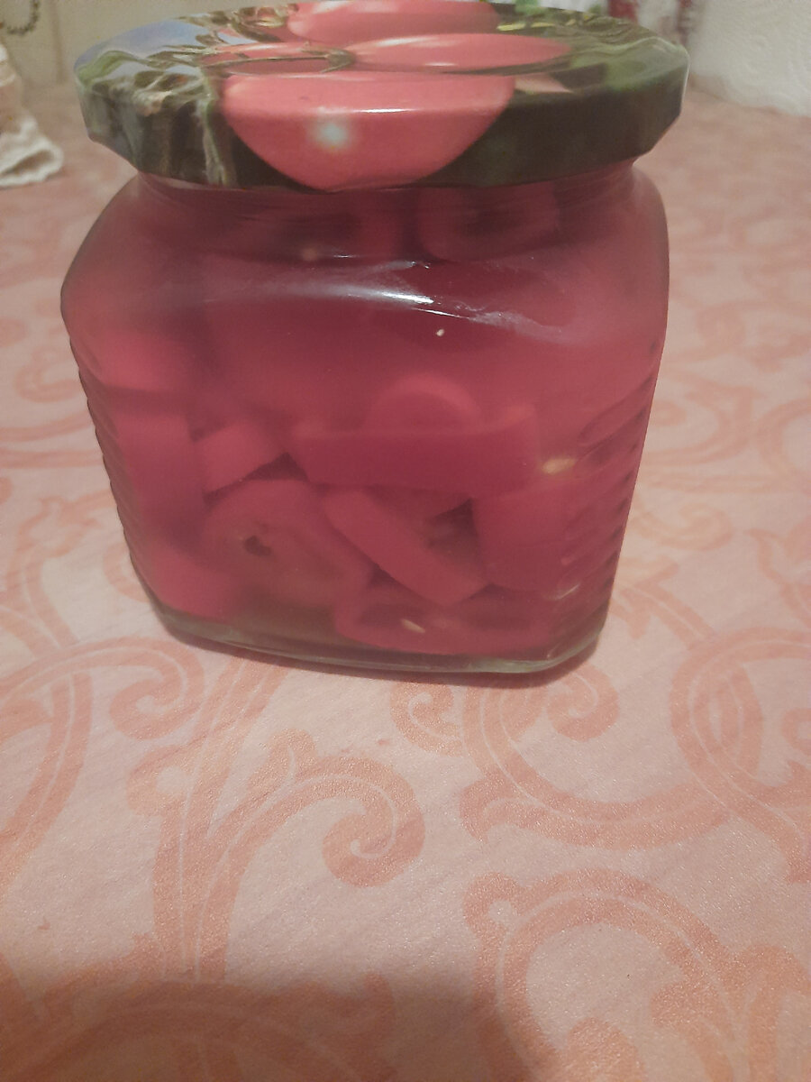Друзья, хочу поделиться простым рецептом вкусной закуски из болгарского и острого перцев. Готовится она очень быстро,легко и просто,получается вкуснятина и все,кто пробовал,попросили рецепт. Для приготовления нам нужен перец болгарский,перец острый,сахар,соль,уксус,вода и растительное масло. Пропорции перца берите на ваше усмотрение ( я делаю 2части острого и 1 часть болгарского). Можно делать только острый,можно только болгарский. Перцы моем,чистим и режем кольцами около 1см шириной. Для маринада: на 1л воды 2ст.л. соли,4ст.л. сахара,1ст.л. растительного масла и 150 мл. 9% уксуса. Все перемешать, добавить перец, с момента закипания варить 1-2 минуты,затем выключить,перцы уложить в стерилизованные банки,маринад еще раз вскипятить и залить перец. Затем банки убрать "под шубу" до полного остывания. Кстати,в этом рецепте острый перец становится не таким жгучим плюс аромат и пикантность болгарского перца-это ооочень вкусно! Попробуйте обязательно!