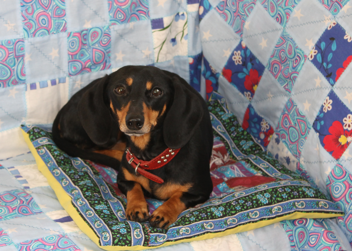 Когда дома с Вами живет четвероногое счастье🐶, то всегда: на полу, на диване, в кровати, на мебели, на столе, на одежде…. почти везде остаются частички шерсти. У нашей Сильвы шерсть короткая как - «реснички», говорит мой муж. И эти «реснички» совсем не радуют на постели. Конечно, существуют различные способы ухода за животным, чтобы бороться с линькой животных не по сезону. Еще есть разные советы в интернете. Недавно прочитала: «Используйте липкий скотч или валик удаления шерсти с дивана или ковра». А простите, сколько этим заниматься если диван не один? А если в доме несколько собак? 🐕🐶🐕 Это скотча не хватит…😕 Конечно, можно не пускать собаку на постель. Но это не так уж легко!!!! Я для себя, по моему опыту, нашла самый простой и не хлопотный способ.👍 Ну ковров у нас нет. А вот диван я покрываю или старой простынкой, или вот таким "самошитым" покрывалом из ненужных лоскутков. Через день-два простираю с ленором и можно снова застилать. А Для Сильвы ещё и подушечка отдельная име