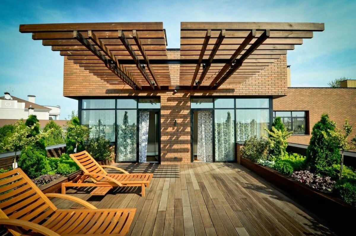 Террасу или садовую беседку нельзя считать излишеством для загородного дома. Такая постройка станет прекрасным уголком отдыха, где можно весело провести время или уединиться. Для строительства террас чаще всего используют дерево, ведь это экологически чистый материал. Постройки из древесины позволяют чувствовать себя в них наиболее комфортно. Здесь можно посидеть в уютном плетеном кресле, читая книгу или размышляя. Терраса как нельзя лучше подходит для шумных игр с детьми. Функция пристройки заключается в защите от дождя и палящего солнца. При этом воздух свободно циркулирует внутри открытой или полуоткрытой террасы. Особенности террас Терраса может представлять собой пристройку к боковой стене дома или расширенное крыльцо. Обязательное условие – ее соединение с одним из жилых помещений. В средней полосе больше популярны полузакрытые террасы, имеющие крышу и боковое ограждение. На юге России зона отдыха может ограждаться всего лишь перилами или живой изгородью. Растения располагают в к