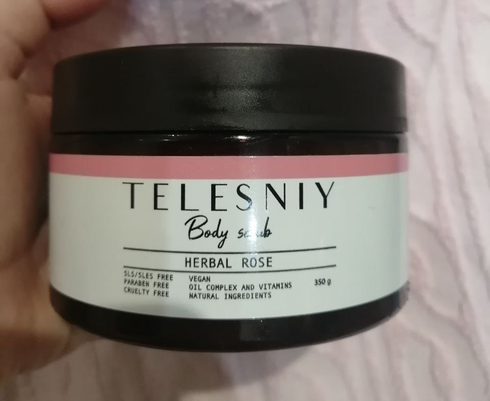 Вот такой интересный скраб купила. Соль, сахар и розы. Масла еще всякие. Начитавшись состава, я решила что такой романтичный скраб мне очень нужен и я без него не обойдусь. А когда пришел и я открыла баночку, то пришлось его еще лизнуть, не удержалась. Реально соленый и сладкий. Так вот я попробовала масла, сахар и соль Адриатического моря, в своей ванной в глубокой русской провинции. Свежий качественный продукт, точно, не горчит))) Простите меня ٩(。•́‿•̀。)۶ Лепестки роз в белоснежном тающем скрабе. Что я хотела рассказать этим постом? Да, собственно, хотелось поделиться необыкновенной вещью. Взял кто-то и сделал такую милую натуральную вещь. Да, конечно можно и самому замутить подобное.. А вам не надоели разве домашние скрабы из кофе и меда? Мне надоели. Купила на Wildberries называется "Скраб для тела антицеллюлитный Роза" бренд TELESNIY. На коробочке по антицеллюлит ничего нет, что тоже правильно, так как целюллита не существует. Кстати, такой скрабик хорош для подарка, вместо