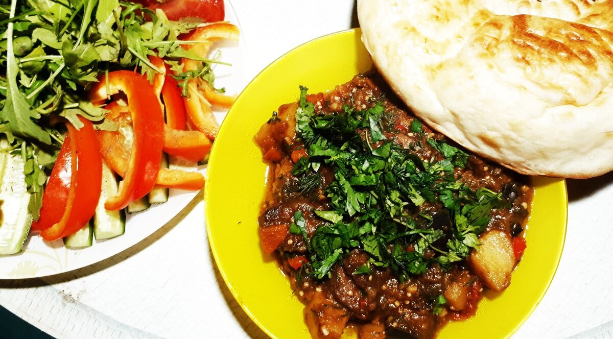 Ох, и активные у нас выдались выходные! Трудились на даче и субботу, и воскресенье, готовя сад к зимнему сезону. К вечеру оценили проделанную работу и единогласно решили наградить себя вкусным ужином. Заслужили😉 Готовить решили рагу с бараниной и овощами. Это блюдо я обычно готовлю дома на плите и получается очень вкусно. Но в этот раз мы решили поэкспериментировать и приготовить его в казане на костре. И забегая вперед, хочу сказать, что по общему мнению наш эксперимент оказался очень удачным. Блюдо понравилось всем😊 Решила и с вами рецептом поделиться, вдруг пригодится) Для приготовления нам понадобятся: ✔ Баранина; ✔ Баклажаны; ✔ Помидоры; ✔ Лук репчатый, чеснок; ✔ Морковь; ✔ Картофель; ✔ Болгарский перец (мы добавляли еще и немного острого красного перца); ✔ Зелень (укроп, петрушка, кориандр) Знаю, что кориандр (кинзу) любят не все. Можно и без нее. Подбирайте то, что вам по вкусу. ✔ Масло подсолнечное рафинированное, соль перец и специи. Специи тоже можно подбирать на свой вкус