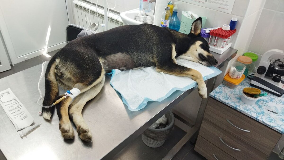 Ситуация оказалась тяжелая. У собаки пробит кишечник, оперировать нельзя, необходимо было наблюдение. К вечеру ситуация стала критической, в итоге таки пришлось делать операцию.