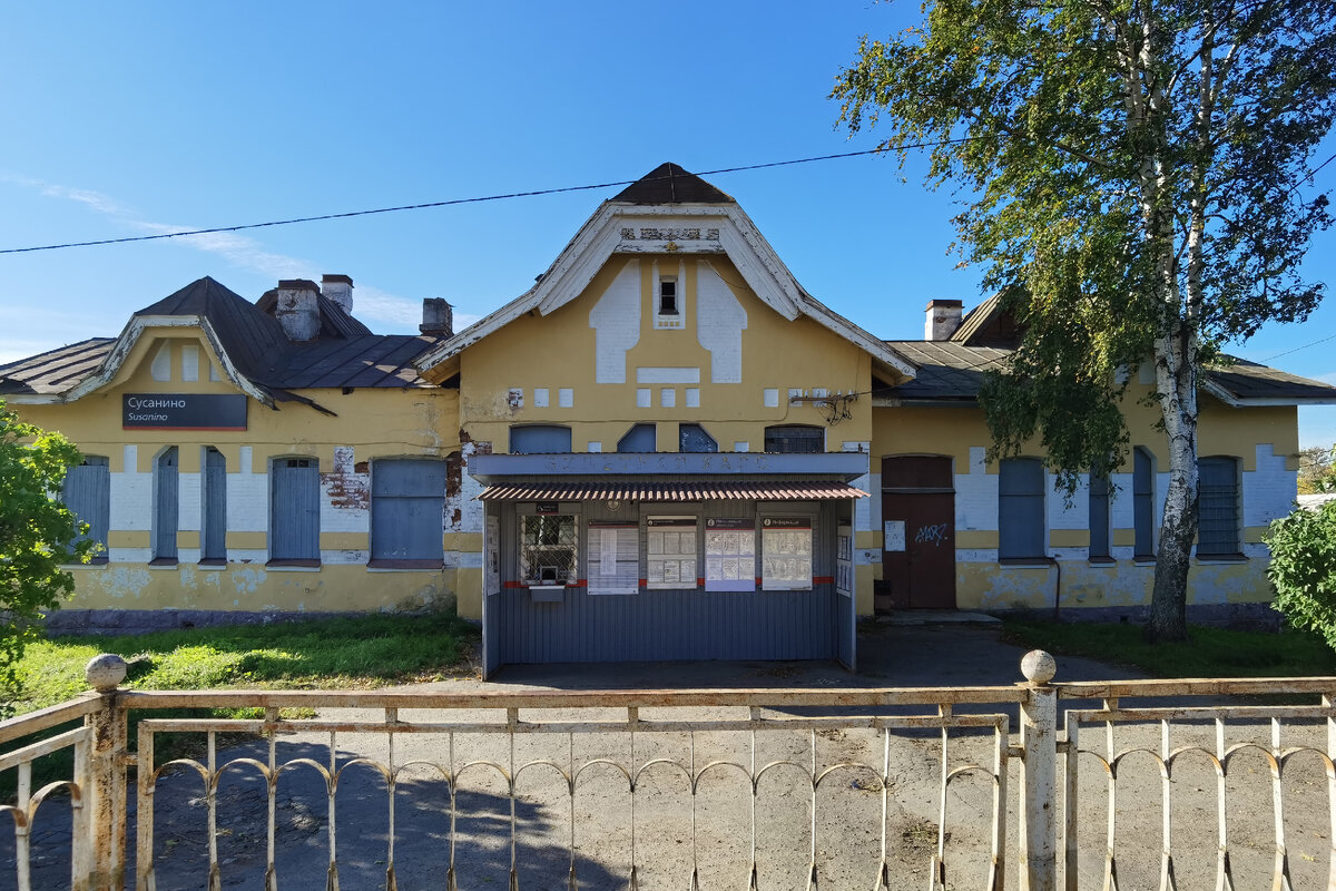 Месяц назад мою фотоколлекцию железнодорожных вокзалов пополнило симпатичное здание, расположенное в посёлке Сусанино (Гатчинский район Ленинградской области). К сожалению, в настоящее время историческое строение не функционирует и находится не в самом лучшем виде. К тому же его частично закрыли ларьком по продаже билетов. Но архитектура для вокзалов весьма необычная. Кстати, очень похожа на усадьбу Надбелье, о которой я писал вчера. А вот подобные железнодорожные здания по внешнему виду я ещё не встречал. Историческая справка Платформа на 47 версте была открыта в 1904 году, а с 1906-го ей дали наименование Ковшевка. Происхождение названия могло быть от фамилии, но этими землями в то время владел человек с фамилией Луккане, поэтому, вероятнее, источником явился «ковш» – округлый изгиб реки. Тогда же здесь возник и посёлок. В 1913 году на полустанке Ковшовка появился каменный вокзал, который год спустя стал станцией Сусанино (его переименовали в честь подвига Ивана Сусанина). Имя архи