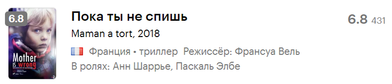 Доброго времени суток, киноманы! Вы на канале КиноКопилка и я продолжаю знакомиться с французскими сериалами. А интересными находками делюсь с вами. В этой статье вы найдёте 4 французских сериала в жанре триллер. Все сериалы закончены. Берём вкусняшки и приступаем к просмотру. Поехали...) Пока ты не спишь / Maman a tort (2018; Франция) Рейтинг: Кинопоиск 6.8 / IMDb 7.20 Жанр: триллер, драма, криминал, детектив Продолжительность: 1 сезон (6 серий по 55 минут) Начать свою подборку хочу сериалом "Пока ты не спишь". В центре сюжета история женщины по имени Марианна. Она работает в полиции и ведёт расследование об ограблении. К Марианне обращается за помощью детский психолог. Мужчина утверждает, что его пациент маленький мальчик был украден. На сеансах мальчик поделился с психологом, что его семья на самом деле не его семья. Детектив сомневается в словах маленького мальчика, ведь это может быть обычной выдумкой ребёнка, но психолог очень настойчив. Марианна и психолог начинают своё, не офи