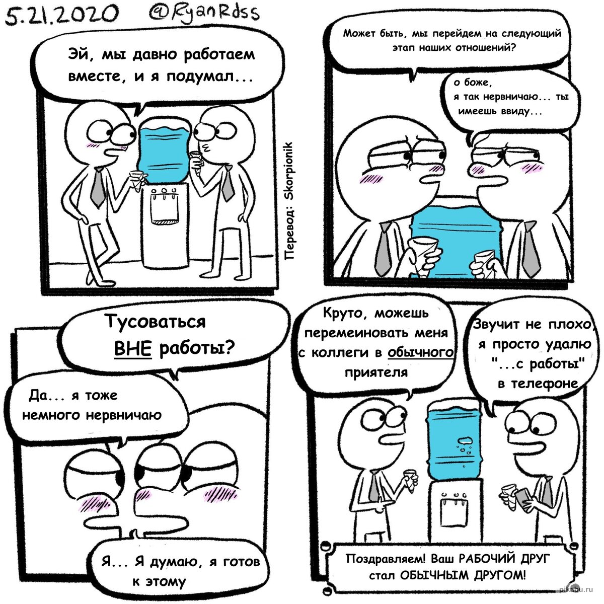 Привет, дорогой друг! Сегодня я решил собрать #комиксы на тему работы и коллег, что по моему мнению особенно актуально. Согласитесь, мало кто безумно любит свою работу, а даже если я и не прав и вы просто фанат своего дела, то, наверняка, у вас случалось выгорание, различные казусы, совсем как у героев некоторых сегодняшних комиксов! Многие из вас смогут найти в них себя в моменте. Например, когда до ужаса хочется в отпуск, но злой начальник не отпускает. Или когда приходится помогать своему коллеге, а делать этого нет никакого желания) В общем, я предлагаю вам расслабиться, отвлечься от своей работы, понастальгировать и погрузится в #развлечения . Повеселиться и посмеяться, вспомнив себя или своих коллег в разных ситуациях. Почему, некоторым коллегам кажется, что вы с ними настоящие приятели, хотя максимум что вы делали вместе — это встречались за стаканчиком воды в коридоре или в туалете? Совсем как #юмор в комиксе автора RuanRdss Согласитесь, иногда так хочется как следует влепить л