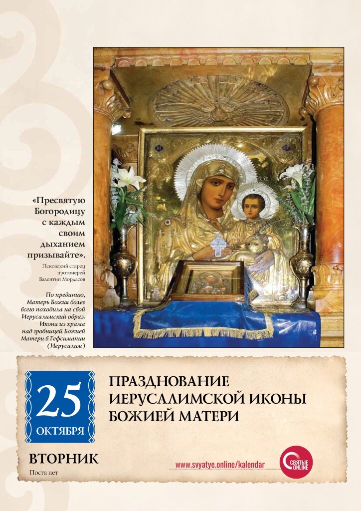 25 октября - празднование Иерусалимской иконы Божией Матери