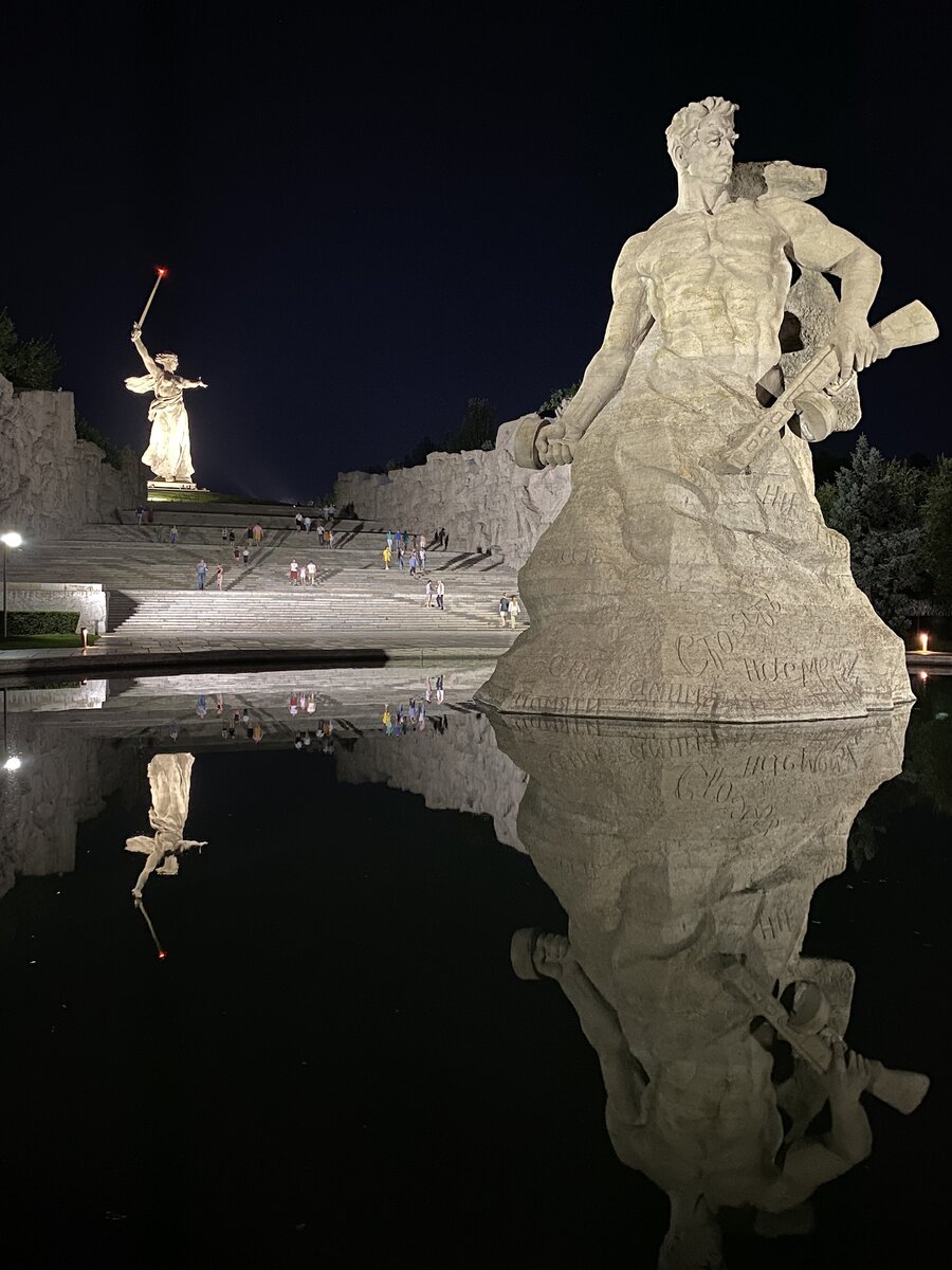 Мамаев курган лучше смотреть ночью. Это невероятное место, как по атмосфере, так и по красоте. Гордостью переполняешься за свою родину, сглатываешь ком в горле и все равно любуешься этим местом.