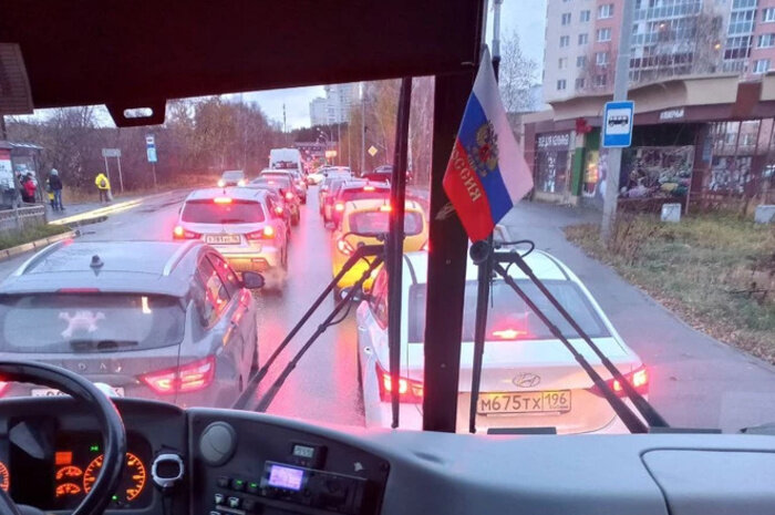 В Екатеринбурге на выезде из Мичуринского выросла огромная пробка