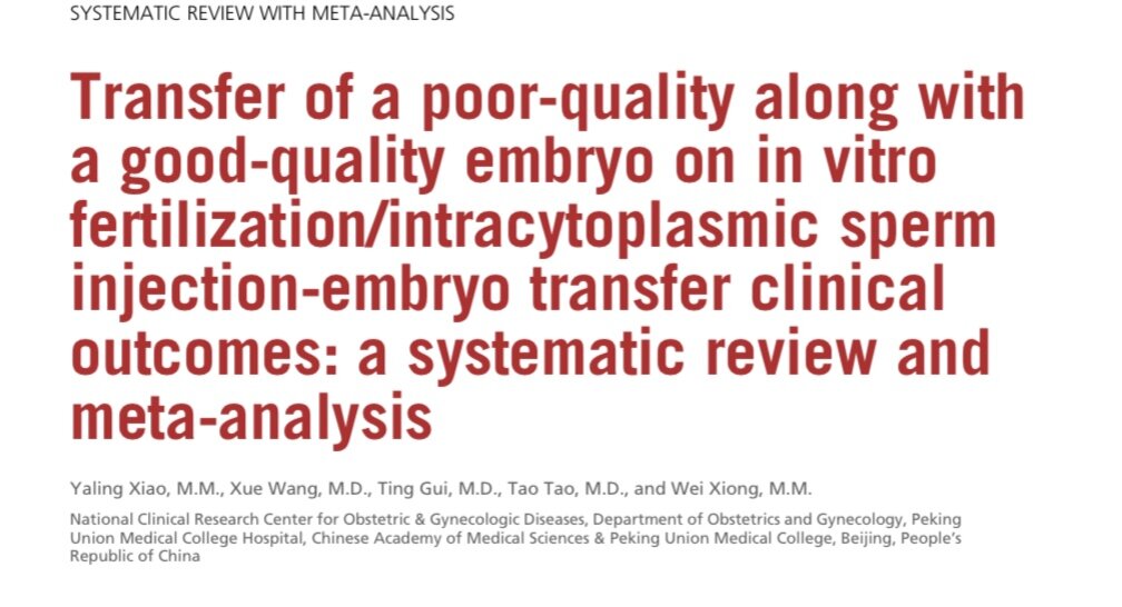 В этом систематическом обзоре и метаанализе авторы обнаружили, что перенос двух эмбрионов (хорошего качества плюс низкого качества) не приводит к увеличению или снижению частоты клинической беременности и частоты живорождения по сравнению с переносом одного эмбриона хорошего качества, но приводит к более высокой частоте многоплодной беременности и родов.