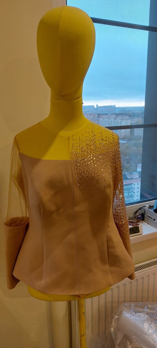 Моя постоянная заказчица обратилась с запросом: " У нас платье на переделку, нужно сделать точно такую же вышивку такими же материалами". Если вы не знаете, то в Россие не найти разнообразие цветов пайеток разного размера, а также бисер по адекватной цене. Но мне очень понравился заказ, поэтому я приступила к реализации. Для начала в любом заказе идет рассчет материалов. Как узнать сколько камней купить? Сколько пайеток? Как делаю я: отмеряю для себя деталь, в данном случае полочку и считаю сколько материалов было использовано. Затем делаю подсчет сколько потребуется на спинку, рукав. С этим списком отправляюсь в магазины, где обычно закупаюсь. В чем проблема магазинов? У них только искусственный свет и как правило ни одного окна. Часто бывает я стою пол часа присматриваюсь к бисеру, который хочу купить, покупаю, выхожу на улицу, а при дневном свете он дает другой оттенок!!!! Я не могу использовать такой материал, потому что часть изделия будет отличаться, поэтому возвращаюсь и делаю