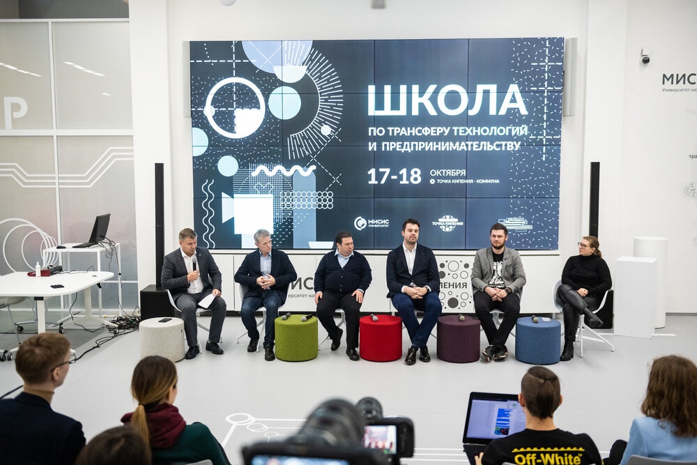 В Университете МИСИС состоялась Школа по трансферу технологий и предпринимательству, собравшая на площадке предпринимательской Точки кипения — Коммуна ведущие вузы, научно-исследовательские корпорации, институты развития, крупный бизнес и стартапы. В рамках школы прошли мастер-классы по применению ТРИЗ и прокачке soft skills, кинопоказ Дней научного кино. Организаторы Школы — Университет МИСИС совместно с Агентством инноваций Москвы, подведомственным Департаменту предпринимательства и инновационного развития Москвы, и Сбером. Партнеры мероприятия — конструкторское бюро KarfidovLab, национальный центр промышленного дизайна и инноваций 2050Lab, Высшая школа инвестиционной политики и предпринимательства РУДН. Ключевой дискуссией стала панельная сессия «Как и зачем заниматься предпринимательством в университетах», состоявшаяся во второй день Школы. Представители МФТИ, НИЯУ МИФИ, Агентства инноваций Москвы, Сбера и Росмолодежи обсудили, какие возможности заложены в Платформе университетског