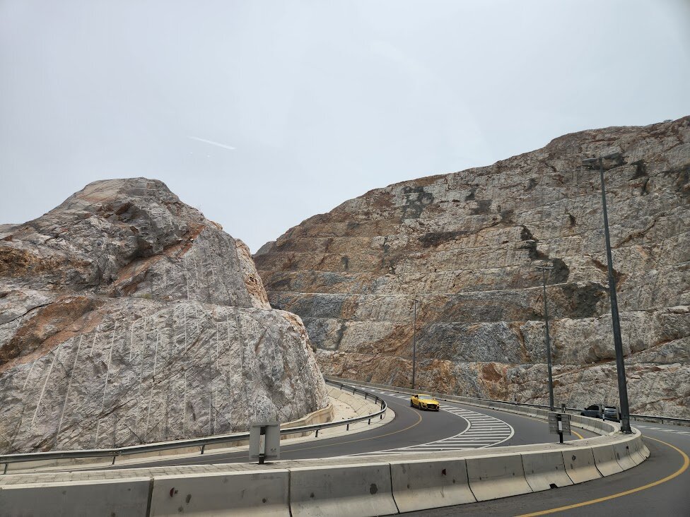 Немного в горы - это просто чтобы развеяться и посмотреть на Маскат сверху. Ведь Маскат - это вам не Дубай с высотками. В Маскате все здания умеренной высоты и столь же умеренного архитектурного дизайна. Серпантиновая дорога среди коричневых гор: Эта дорога немного кружит мне голову, и всё же я не могу удержаться - осторожно смотрю на город, раскинувшийся внизу. Всё в бежевых тонах. Даже небо окрашено в розово-бежевый цвет. Видимо, горы коричневого цвета, окружающие со всех сторон город, дают такой эффект. Хотя... не только горы. Ну потом увидите. А вот вид города чуть ближе - совсем другое дело. Краски уже другие. Конечно, тут имеет значение, насколько ясный был день. За время нашего пребывания в городе мы нередко наблюдали непрозрачный воздух. Я такое явление называю марево. Не знаю, насколько слово верно мною применяется. Пусть географы разбираются в этих природных явлениях. А мы - во дворец! в резиденцию правителей Омана! Если вы ожидаете увидеть нечто помпезное, всё-таки ДВОРЕЦ!