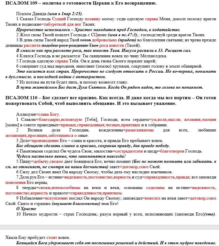 Слово на сегодня - ПСАЛОМ 109, 110