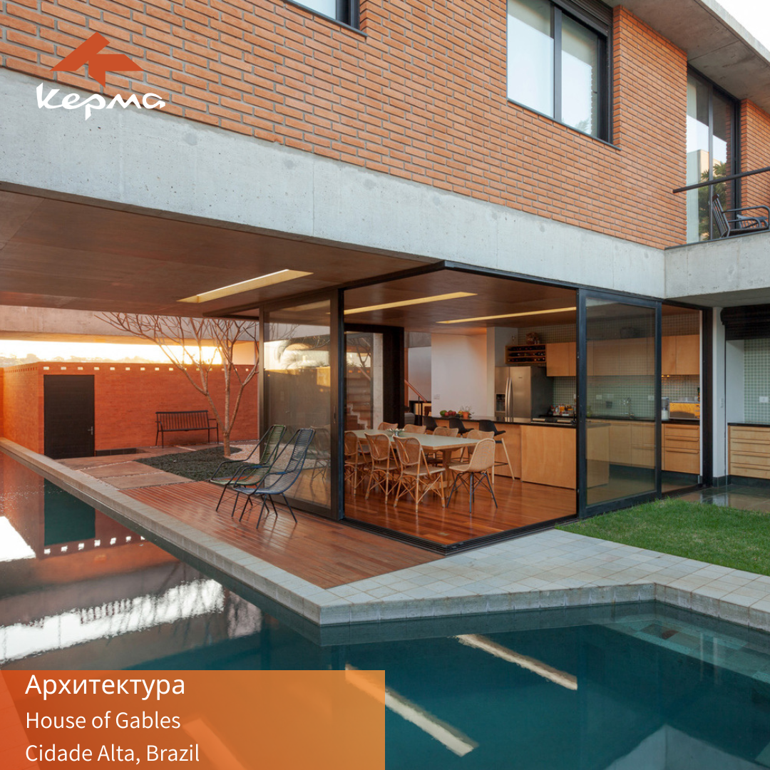 Дом в форме буквы “u” с внутренним двориком, организованный на участке размером 16 х 25 метров и уклоном 2 метра, спроектировала студия Verri & Galvão Arquitetos. На участке располагается 20-метровая дорожка для плавания, где встречается земля и вода. На первом этаже находятся: главный вход, гараж, жилые помещения - еще одно закрытое, с телевизором и музыкальными инструментами, и другое открытое, с местом для встреч во время еды.🍽 Дом был спроектирован в виде конструкции из железобетона с открытыми колоннами, балками и плитами и закрыт такими материалами, как красный глиняный кирпич, белая каменная кладка и стекло, расположенные таким образом, чтобы сохранить конфиденциальность и тепловой комфорт. 🏡🌿В этом проекте дом гармонирует и дополняет окружающий ландшафт. Photographs: Jefferson Ohara #кирпич #кирпичнаякладка #архитектура #кирпичнаяархитектура #современнаяархитектура #баварскаякладка #фасадныйкирпич #кирпичнаястена #кирпичоблицовочный #кирпичныйфасад