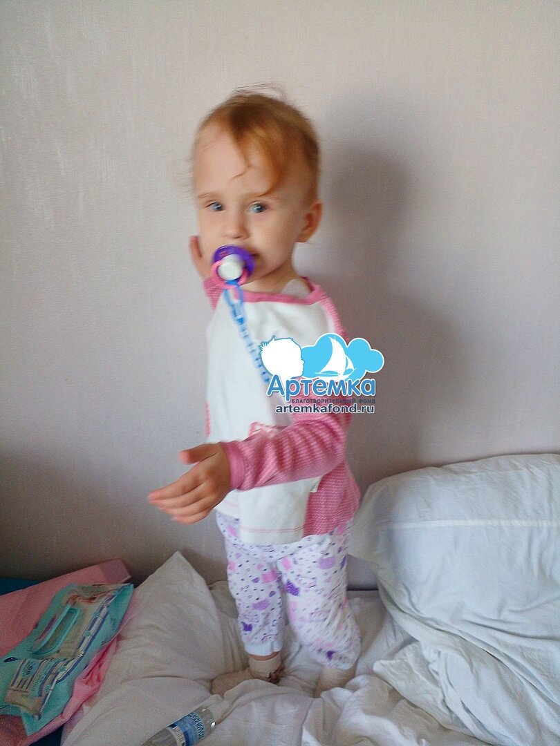 Софье Кшениной 2 года, у девочки синдром короткой кишки. Из-за диагноза у Сони не усваиваются витамины и микроэлементы из пищи, всю еду родители переламывают на блендере и кормят дробно 6 раз в день. Недостаток электролитов каждый день восполняют с помощью специальных растворов.