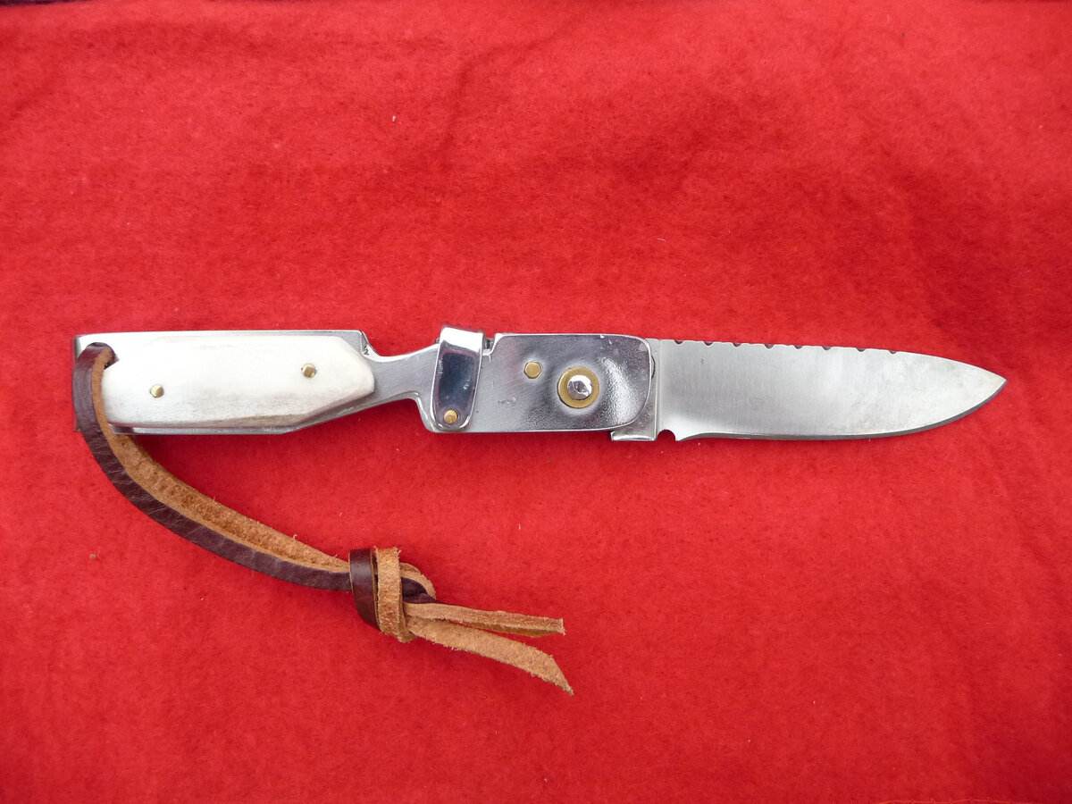Ножевых дел мастер Паскаль Тюрпен уже упомянался на страницах моего блога, ему французы обязаны созданием Норманшуа. Довольно симпатичного ножичка, прототипом для которого послужила находка, датируемая VI веком. Конечно, в арсенале мастера есть довольно много изделий, он изготавливает различные виды холодного оружия, ножи, инструменты вдохновленный историческими образцами. Однажды принимая участие в выставке, Паскаль познакомился с не менее интересным мастером, это было Ален Деси. Ален новатор и изобретатель, его изделия отличаются оригинальными и надежными ножевыми замками собственной разработки. Нож норманшуа выпускается в разных размерах, но даже самый большой имеет длину клинка 70 мм, больше в виду конструктивных особенностей использовать крайне неудобно. Тут-то Десси и подсказал идею простого, но надежного запорного механизма для ножа. В результате коллаборации родился нож Тюрси. Название дано от фамилий причастных. Перейдем непосредственно к ножу. Рукоять по-прежнему изготовл
