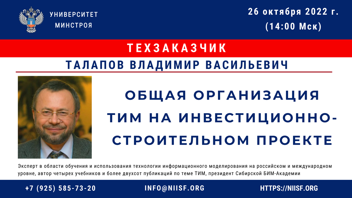 Завтра, 26 октября в 10:00 (мск)! состоится вебинар Общая организация ТИМ на инвестиционном строительном проекте